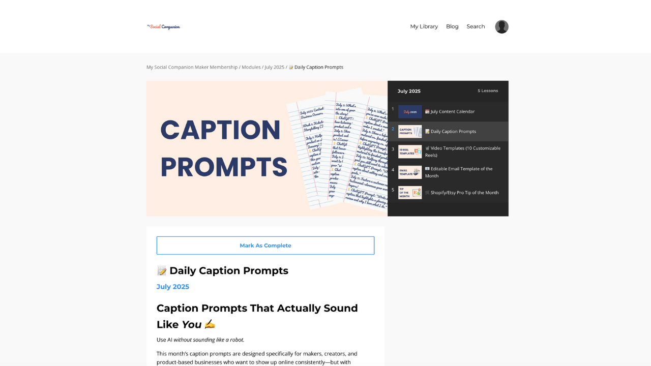 My Social Companion is a monthly membership for makers that helps you stay consistent online—without spending hours creating content.